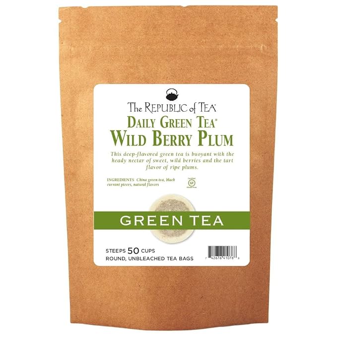 The Republic of Tea Wild Berry Plum Green Tea, 50 Tea Bags (Refill Bag)