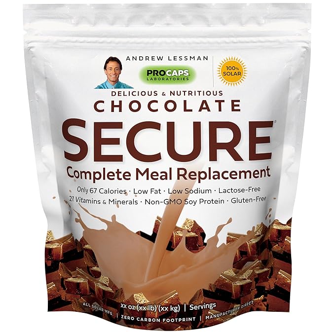 ANDREW LESSMAN Secure Soy Complete Meal Replacement - Chocolate 100 Servings - Only 67 Calories, 7g Non-GMO Soy Protein, Vitamins and Minerals, Low-Fat, Nutritious and Delicious, Mixes Instantly