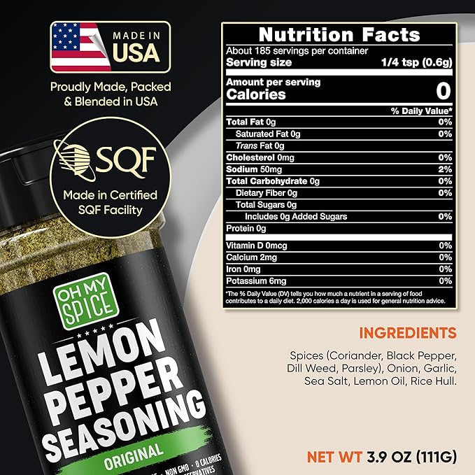 - 🇺🇸 MADE IN THE USA FOR QUALITY & FRESHNESS – Proudly made in the USA, this premium lemon pepper blend is created with the highest quality standards. Each batch is carefully blended and packaged to ensure optimal freshness and bold flavor, making it a chef-approved seasoning for home cooks, meal preppers, and food lovers who demand the best.