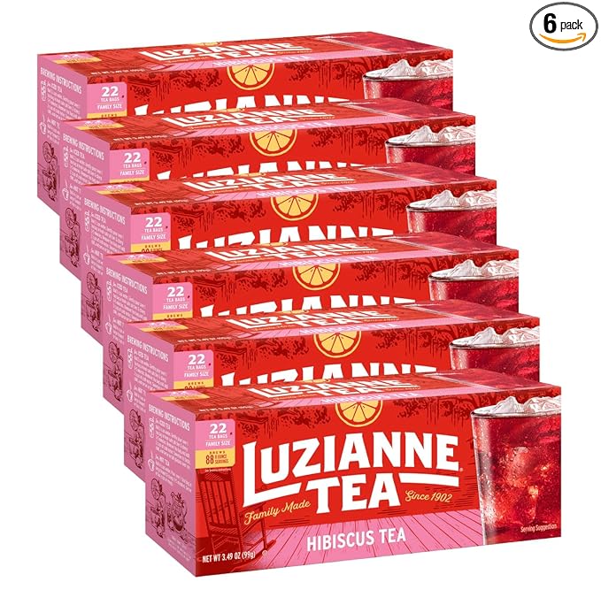 Luzianne Unsweetened Hibiscus Iced Tea Bags, Family Size, 22ct Box (Pack of 6)