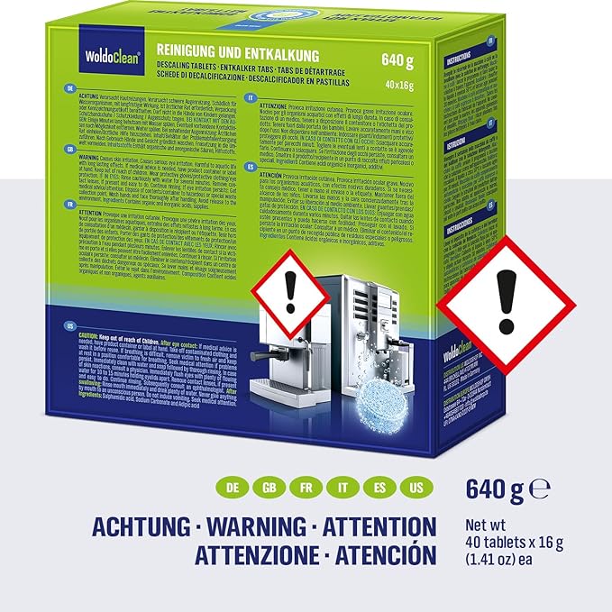 - WoldoClean Coffee maschine Cleaner and Descaler for 40 uses erase calcium and limescale to protect heating elements and keep every coffee machine or kettle running.