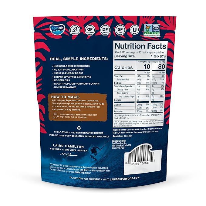- CHOCOLATE LOVERS DELIGHT - Our rich Cacao Superfood Creamer combines raw, cold-pressed cacao with our Original Superfood Creamer to create a deliciously guilt-free mocha,