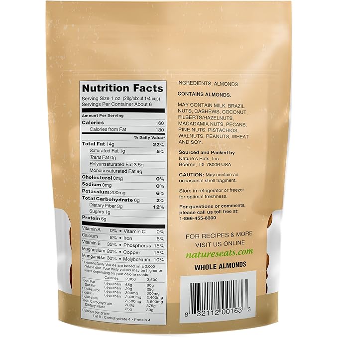Nature's Eats Whole Natural Almonds 6oz, 6 Ounce (Pack of 7)