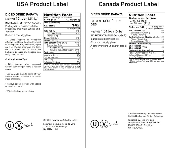 Food to Live Dried Diced Papaya, 10 Pounds Kosher, Vegan, Sweetened, Unsulfured, Bulk