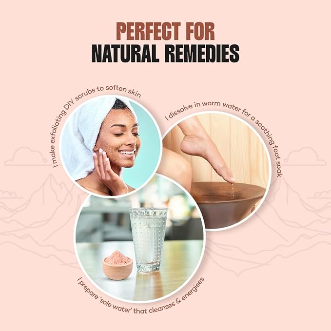 - Perfect for Bath Soaks, Salt Scrubs - This food-grade pink Himalayan salt also serves as a versatile self-care staple. Use it to create rejuvenating bath soaks, exfoliating body scrubs, and natural foot soaks. Its soothing texture and mineral content make it a popular choice for DIY spa rituals and clean skincare formulations.