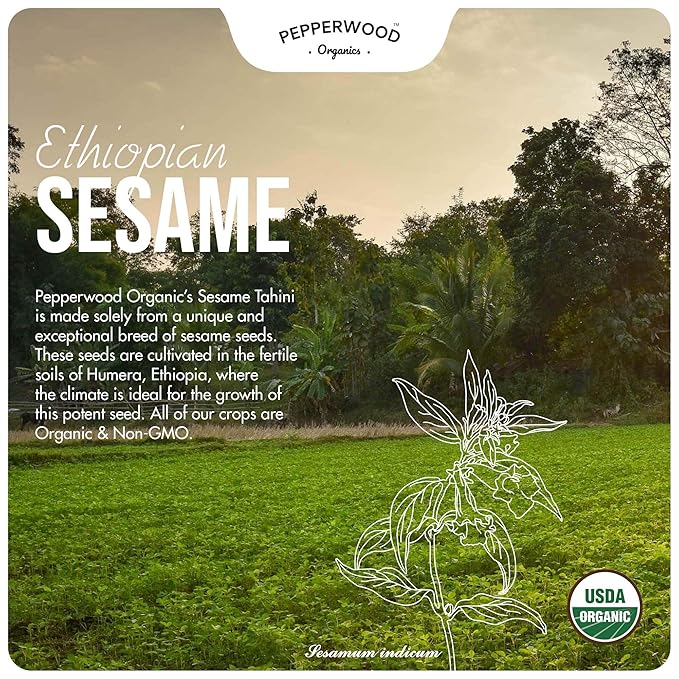 Pepperwood Organic Stone-Ground Ethiopian Sesame Tahini Paste, Hulled, Unsalted, Non-GMO, Gluten-Free, Kosher, Vegan, USDA Organic, Peanut-Free, 6.6lb Bucket