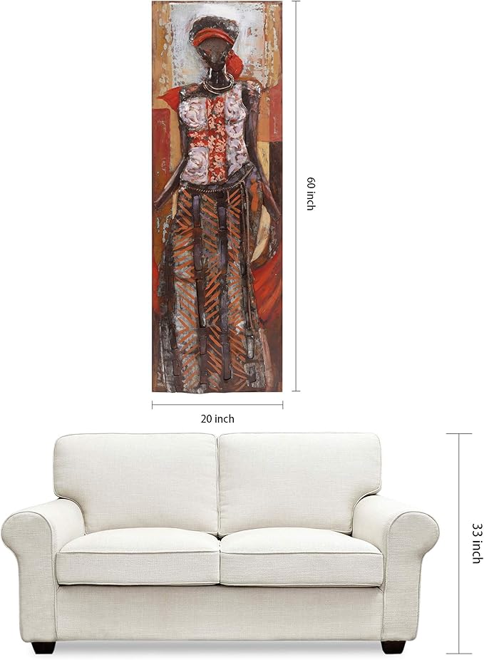 - Iron wall sculpture - The tribal elements of her dress contrast with the metal, making her all the more fascinating.The observer will draw many insights and inspirations from this unique wall art image
