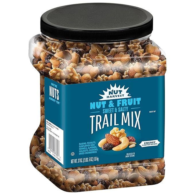 - Contains raisins, peanuts, sunflower seed kernels, almonds, walnuts, cashews & dried cranberries