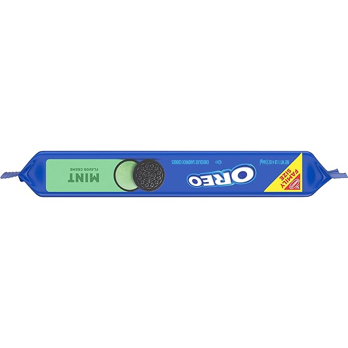 - Twelve 20 oz family size packs of OREO Mint Flavored Creme Chocolate Sandwich Cookies (packaging may vary)