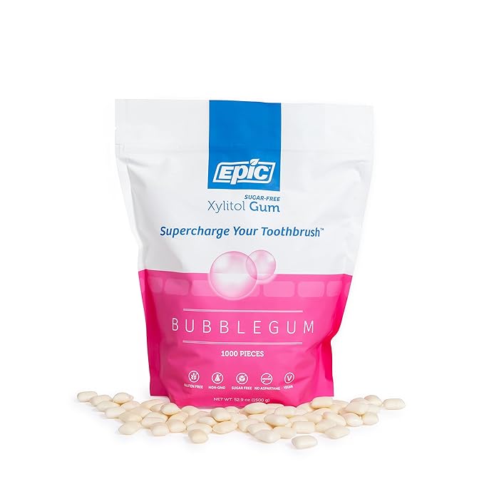 Epic 100% Xylitol Bubblegum Chewing Gum - Sugar Free, Aspartame Free Dental Gum - Supports Oral Health & Fresh Breath - 1000 Pieces