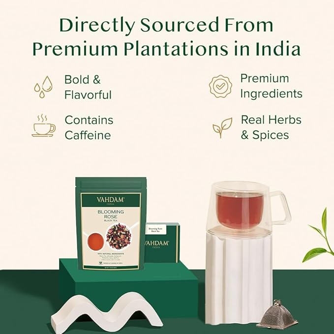 VAHDAM, Blooming Rose Black Tea - Premium Black Tea with Rose Petals (3.5oz) DELICIOUS & AROMATIC Black Tea Loose Leaf with Fragrant Rose Petals | Vacuum Sealed Pack