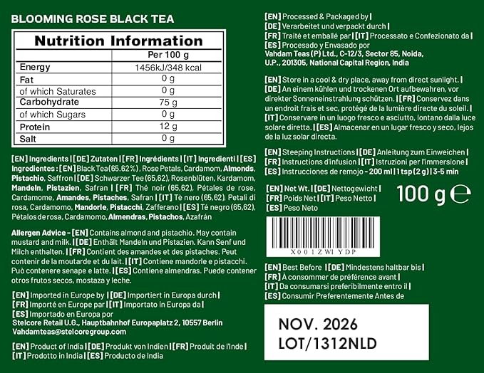- BLOOMING ROSE BLACK TEA - Indulge in the exquisite Blooming Rose Black Tea. This specialty blend of premium Black tea is harmoniously infused with heavenly Ashwagandha, Turmeric, Moringa Oleifera, Ginger, Chamomile & the alluring essence of blooming rose. With medium caffeine, it's suitable for any time of day. Enjoy its captivating flavor without milk & embark on a journey of taste and tranquility.