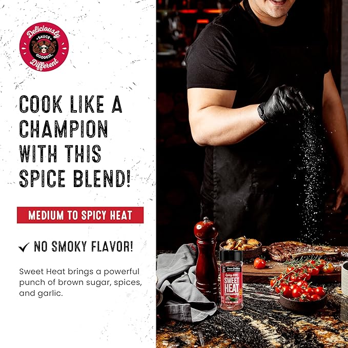 Sauce Goddess - Spicy BBQ Sweet Heat Spice Shaker - Barbeque Rub with Brown Sugar, Garlic, and Sweet Seasonings for Cooking - 5.2 oz