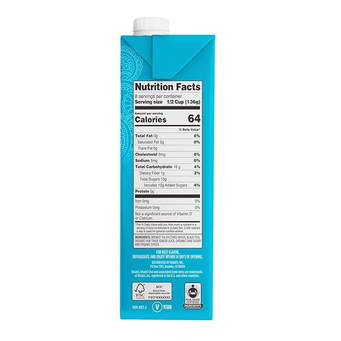 - ππ«π£ππ₯π§ππ¬ ππ₯ππͺππ: Indulge in the bold flavors of organic fresh-pressed ginger, black tea, and fiery masala spices. Each batch is handcrafted with fair-trade ingredients for a rich, aromatic, and perfectly spiced chai experience. Each 32oz carton makes 8 lattes of smooth, delicious chai tea.