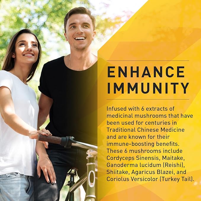 - INFUSED WITH 6 IMMUNE-BOOSTING MUSHROOMS: A powerful blend of six organic mushrooms that support immunity, including Cordyceps, Coriolus Versicolor (Turkey Tail), Maitake, Agaricus Blazei, Reishi, and Shitake.