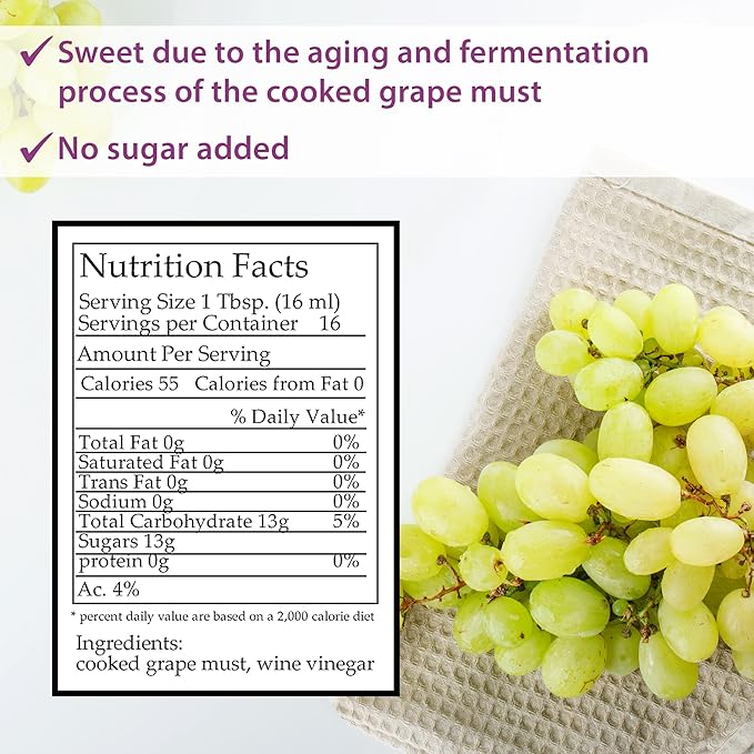 - 【No Artificial Ingredients】The secret to our great taste is simplicity, this balsamic vinegar has two ingredients: cooked grape must and wine vinegar, which means there are no thickening agents, no caramel, no added flavors, no artificial additives, no colorants, and no preservatives.