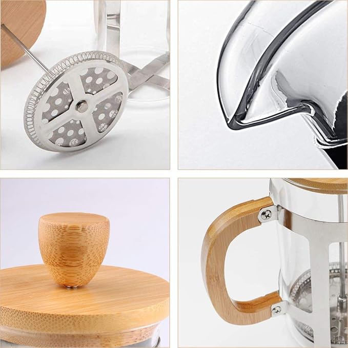 - Heat Resistant-- The glass french coffee press made from heat resistant borosilicate glass with stainless steel frame and heat resistant original china durable bamboo handle, warm for every day coffee.