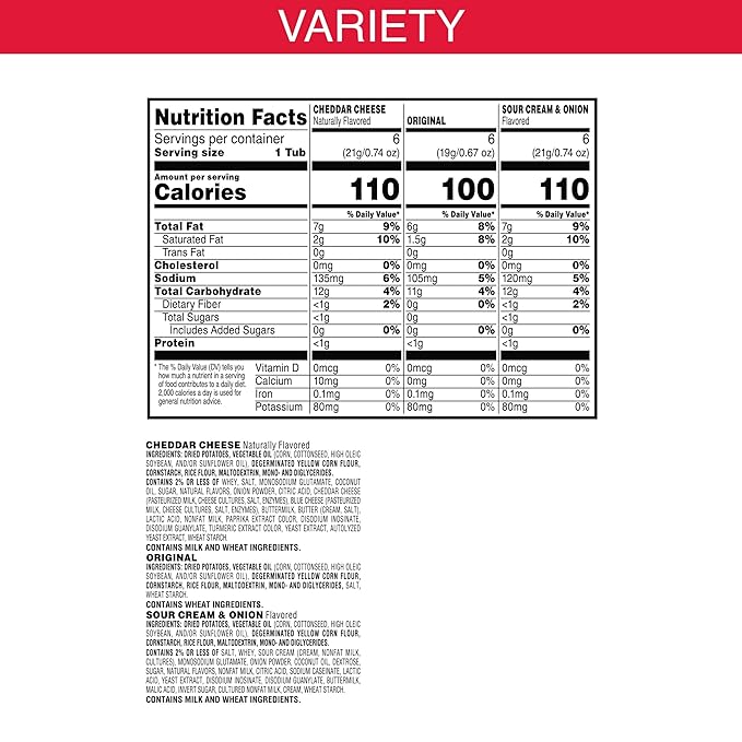 - Flavor : Cheddar Cheese, Original, Sour Cream