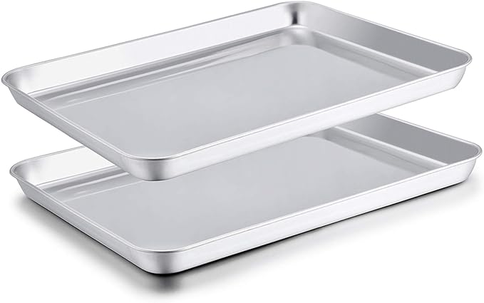 TeamFar Baking Sheet Set of 2, Baking Pans Tray Cookie Sheet Stainless Steel, Non Toxic & Healthy, Mirror Finish & Rust Free, Easy Clean & Dishwasher Safe