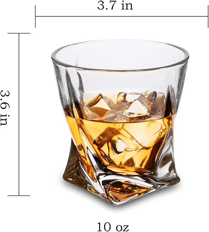 KANARS Whiskey Glasses Set of 4, 10 Oz Crystal Old Fashioned Cocktail Glass in Gift Box, Twisted Lowball Bourbon Tumbler for Scotch Whisky Cognac, Rock Barware for Men Gift