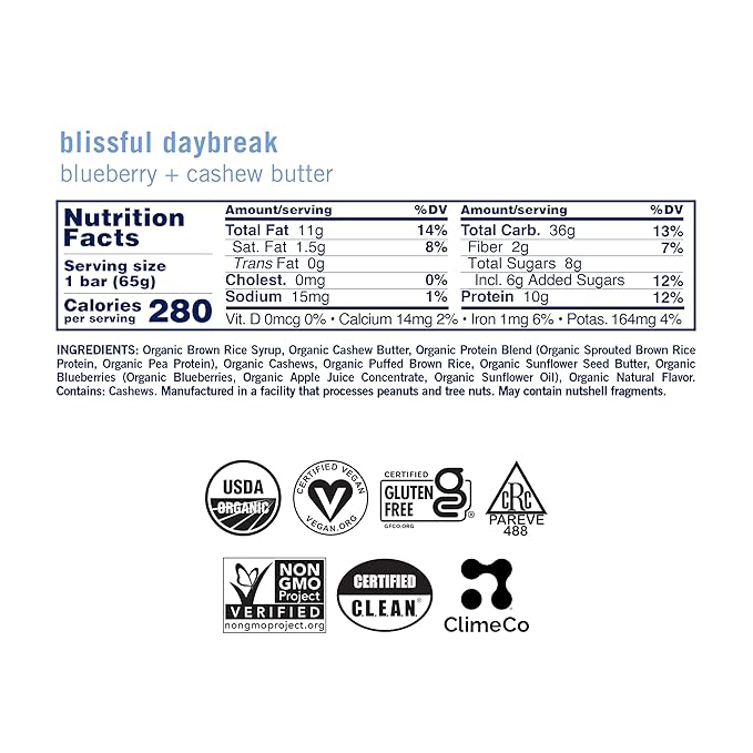 - HEALTHY INDULGENCE: The perfect ratio of real, tangy blueberries, organic cashews, and creamy cashew butter come together with 10g of plant-based protein that will revitalize your spirit all day long.