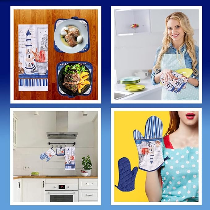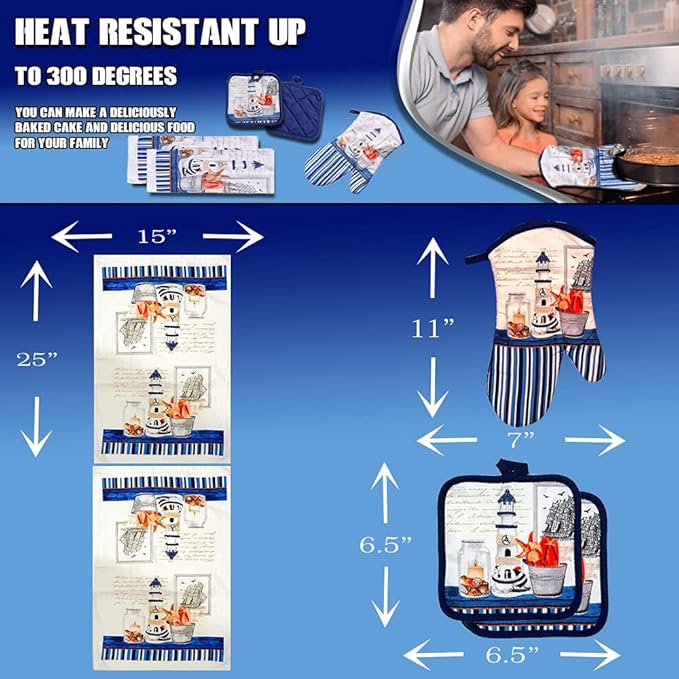 - Heat Resistant To 300 Degrees The oven mitt and potholders are design to look great while being functional for quick use, such as removing a plate from the microwave, these items are not designed to remove hot pies from the oven