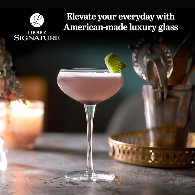 Libbey Signature Kentfield Coupe Cocktail Glasses Set of 4, Coupe Bowl Stemmed Cocktail Glasses, Dishwasher Safe Champagne Glass Gift Set