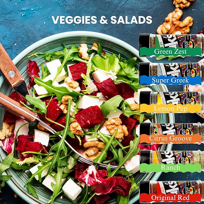 - 100% SALT FREE & SUGAR FREE - DAK's Spices is a full line of innovative NO SALT Spice Blends. High in quality, high in flavor, low in sodium. Cut back on salt intake and enjoy a kick of bold flavor without compromising health. Our line of salt free seasonings left out the salt, but kept all the flavor. Make Every Dish Tasty, with Just a Pinch.