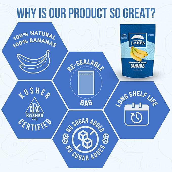 Thousand Lakes Freeze Dried Fruit - Sliced Bananas 4-pack 3.2 ounces (12.8 ounces total) | No Sugar Added | No Oils or Fat