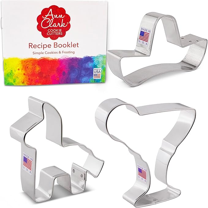Cinco de Mayo Cookie Cutters 3-Pc Set Made in USA by Ann Clark, Pinata, Sombrero, Margarita Glass