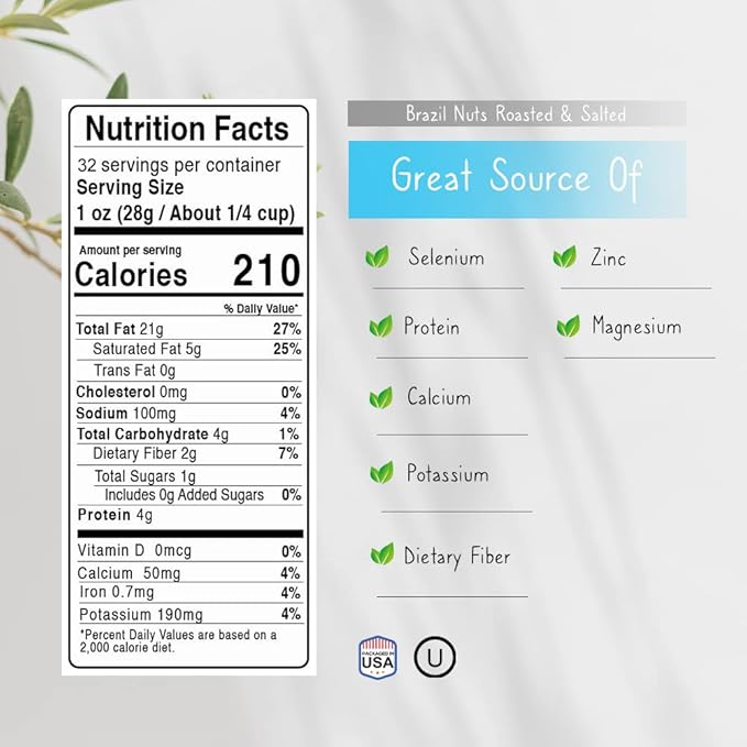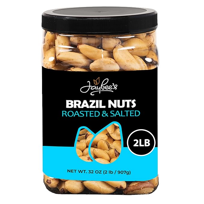 Jaybee's Roasted Salted Brazil Nuts - (32 oz) Great for Daily Use, Baking, Cooking and Gift Giving - Reusable Container - Kosher - Vegan, Paleo, Keto Friendly Healthy Snack