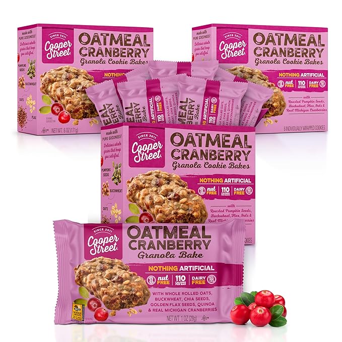 - COOKIES, MADE BETTER - Fuel your day and enjoy delectably chewy goodness with Cooper Street Granola Bars! Bite into wholesome and healthful ingredients like chia, flax, buckwheat and oats and get off on the right foot with our healthy snack bars!
