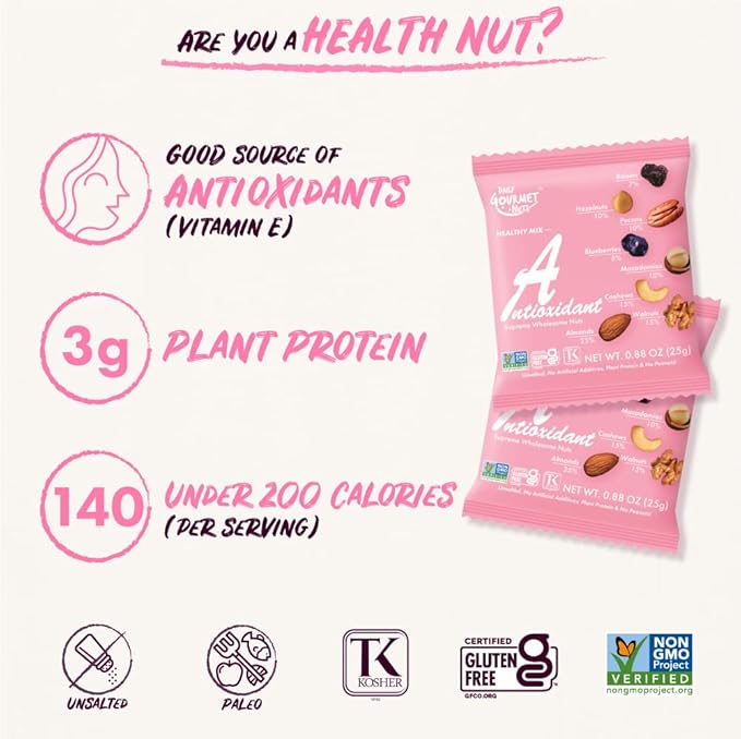 Daily Gourmet Nuts - Unsalted Mixed Nuts Snack Packs/Individually Wrapped Snacks/Nut Snacks/No Peanuts/Healthy Trail Mix Individual Packs/Deluxe Assorted Snacks