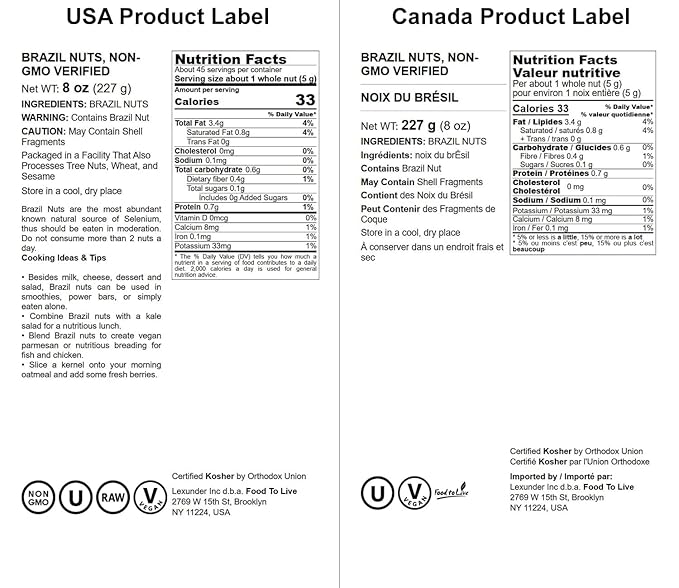 - ✔️FRESH AND PREMIUM QUALITY: Brazil Nuts from Food to Live are Raw, Non-GMO verified, and are packed in a resealable bag to keep them fresh for many months.