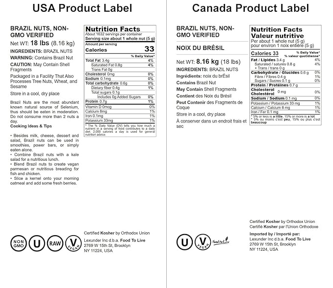 - ✔️FRESH AND PREMIUM QUALITY: Brazil Nuts from Food to Live are Raw, Non-GMO verified, and are packed in a resealable bag to keep them fresh for many months.