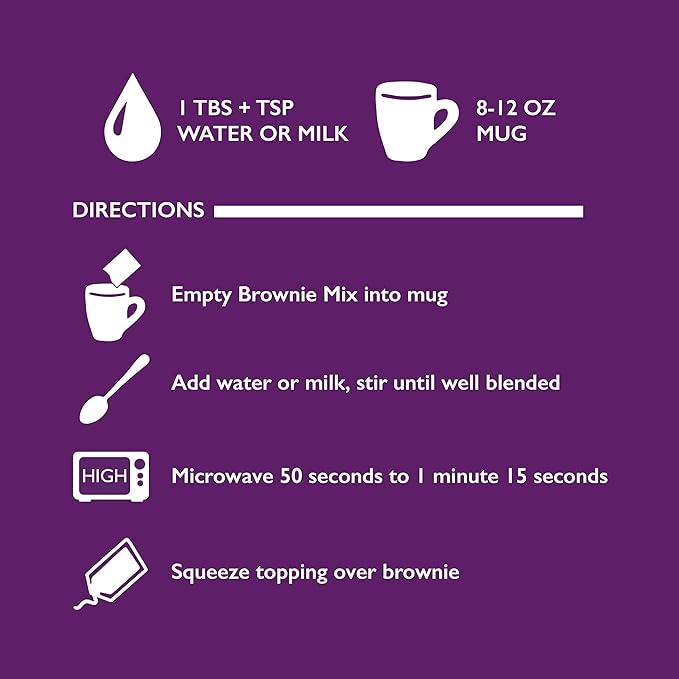 - QUICK AND EASY: Make brownie mug cake by adding water and popping in the microwave