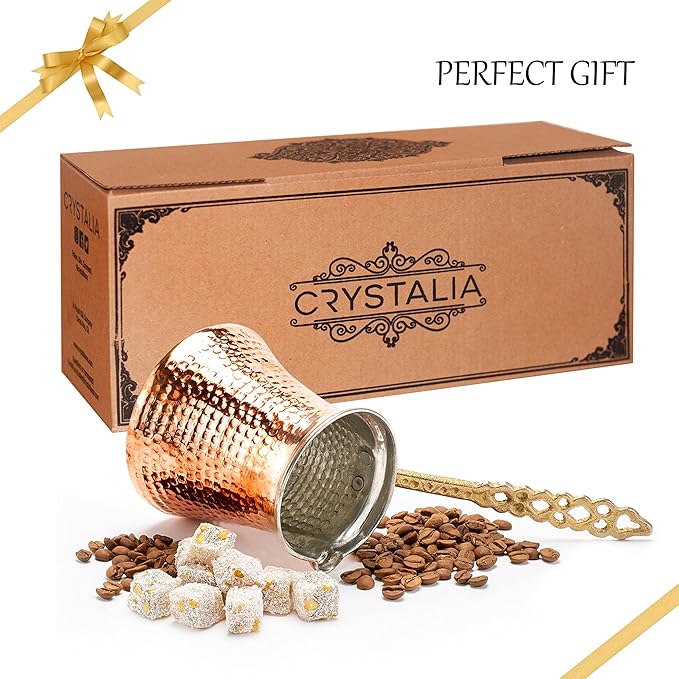 Volarium Turkish Coffee Pot, Greek Arabic Coffee Maker, Hammered Copper Coffee Cezve, Stove Top Coffee Maker (Small)