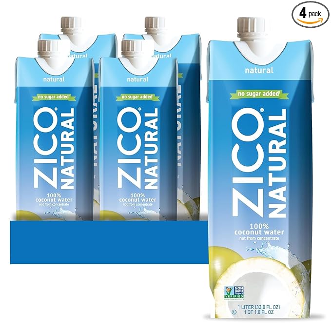 Zico 100% Coconut Water, No added Sugar, Refreshingly Delicious, Hydration with Electrolytes, 33.8 Fl Oz (Pack of 4)