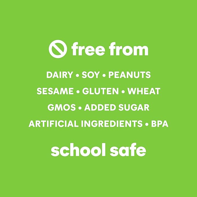 - FREE OF "BIG 9" ALLERGENS: School safe snacks free from added sugar, artificial ingredients, GMOs, gluten, dairy, soy, peanuts, tree nuts, sesame, eggs, fish, shellfish and BPAs.