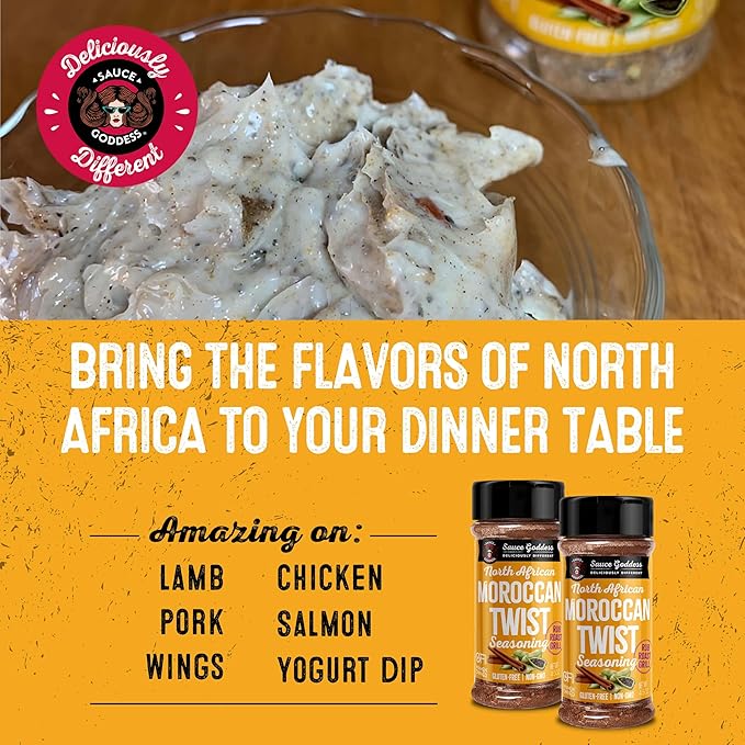 Sauce Goddess Moroccan Twist Spice Shaker (2-Pack) - Exotic Blend of Cardamom, Cinnamon, and More. Spices and Seasonings, No Sugar, Gluten-Free, Low in Sodium, Vegan-Friendly BBQ Rub