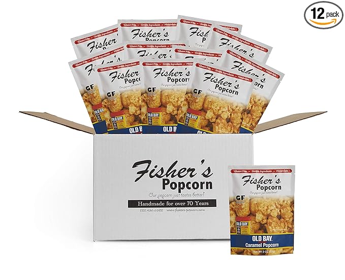 Fisher's Popcorn | Old Bay Seasoned Caramel Flavor | 2oz Bag | 12-Pack