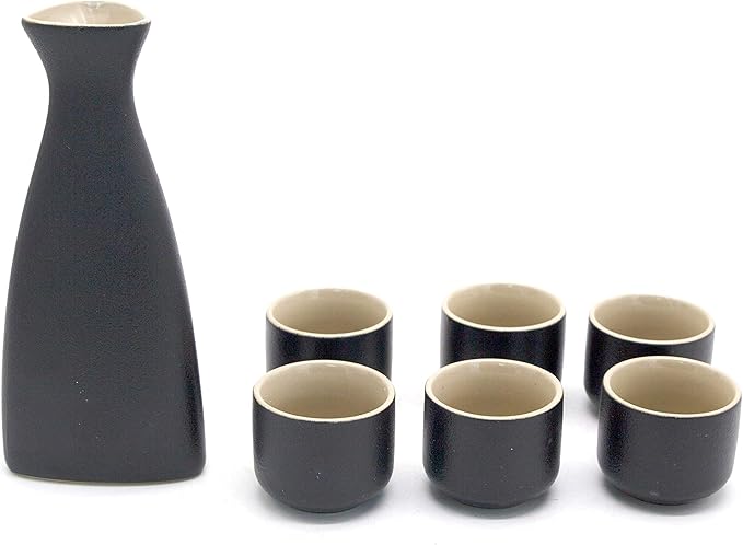 Japanese Sake Set, Traditional Black Ceramics Sake Sets 1 Pot and 6 Cups