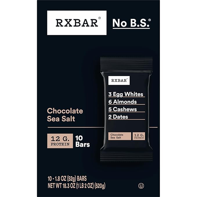 - Includes one, 18.3oz box containing 10 RXBAR Chocolate Sea Salt protein bars