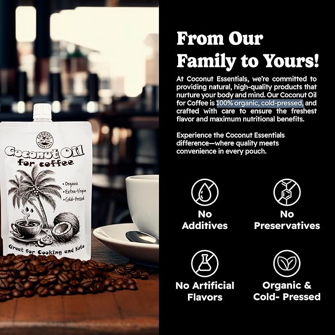 Coconut Essentials - Organic Coconut Oil for Coffee, Cold-Pressed, MCT Oil for Weight Loss, Brain & Digestive Health, Keto-Friendly, Natural Slim, 1 Pouch, 7 fl oz