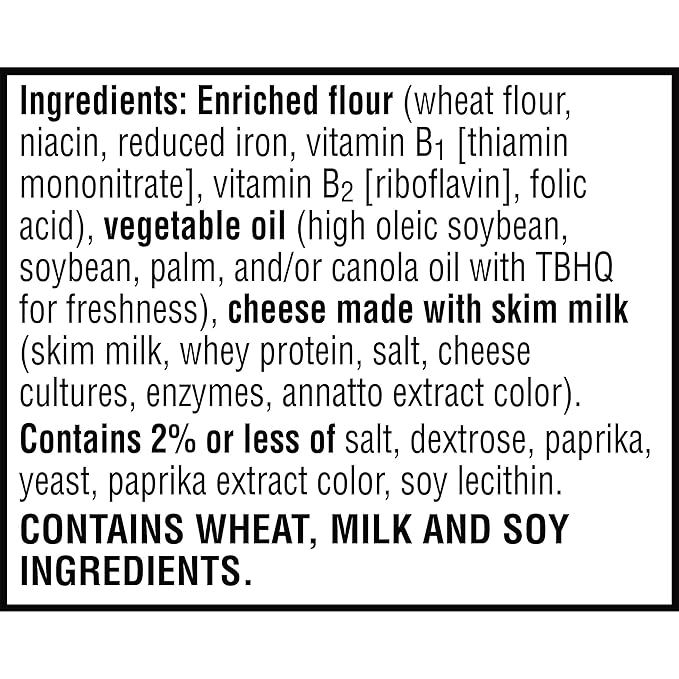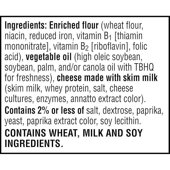- Made with 100% real cheese aged for a bold taste; Kosher Dairy; Contains wheat, milk, and soy ingredients