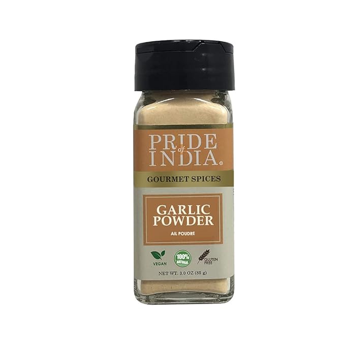 Pride of India – Garlic Fine Ground – Gourmet & Culinary Grade – Classic Seasoning to Pasta/Sauces/Dips/Bakes – Easy to Use – 3 Oz. Small Dual Sifter Bottle