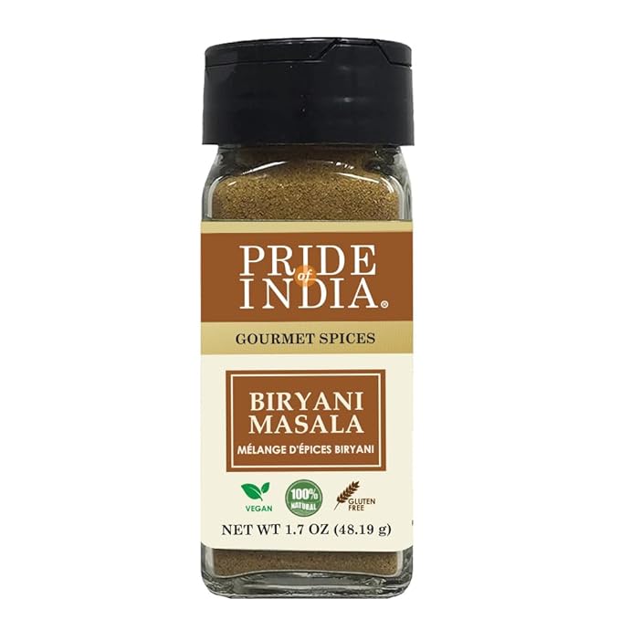 Pride of India – Indian Biryani Masala Seasoning Spice - 2.40 oz. Small Dual Sifter Bottle – Gourmet Spice Blend - Ideal for layered vegetable and meat pilaf – Suitable for Vegetarians & Vegans