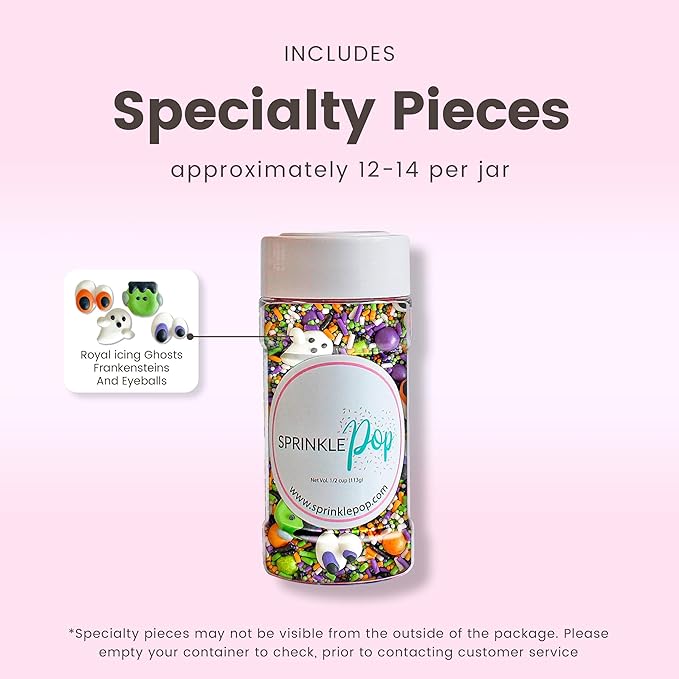 Sprinkle Pop Monster Mashup Sprinkle Mix| Orange Black White Lime Purple Sprinkles| Halloween Sprinkles with ~12 monster, ghosts, creepy eyeballs Made in USA for Decorating Cakes Cookies Cupcakes, 4oz
