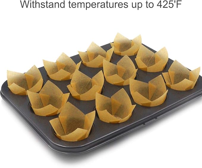 - Healthy material & no color fading - Grease-proof, non-stick, natural paper cupcake liners helps to retain moisture and promotes even baking for cupcakes or muffins,suitable for oven, microwave, heat resistant up to 425 degrees Fahrenheit.
