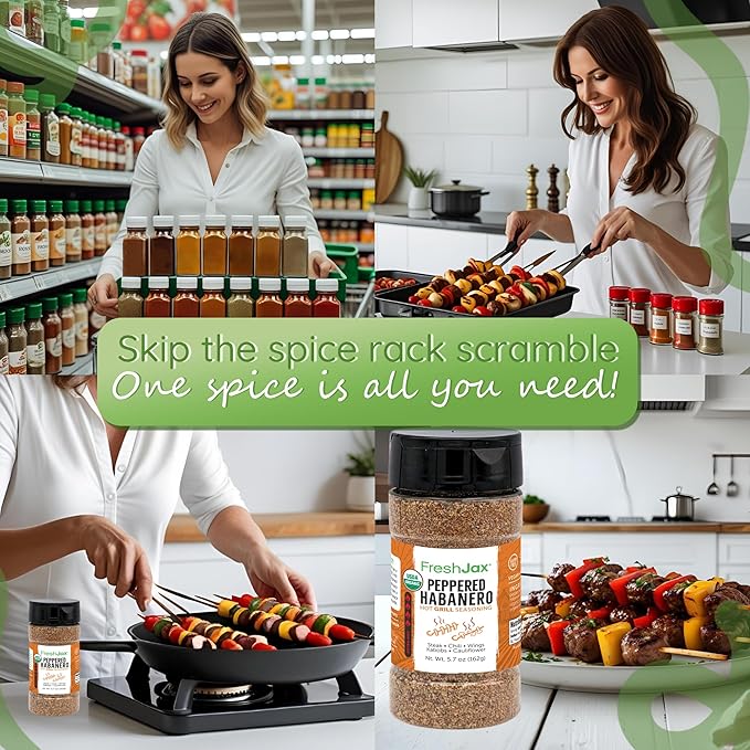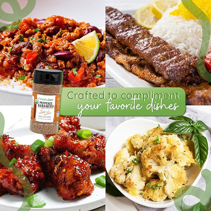 FreshJax Organic Peppered Habanero Hot Grilling Seasoning Spice (5.6 oz Large Bottle) Non GMO, Gluten Free, Keto, Paleo, No Preservatives Habanero Pepper Powder Blend